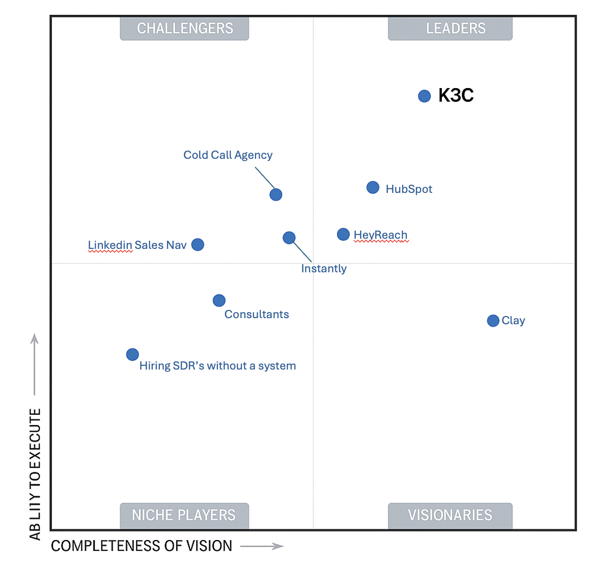 London, August 2025 – K3C, the world’s leading LeanGTM-as-a-Service platform (according to absolutely no official analyst firm), today announced it has been named a Leader in the 2025 Granted Magic Quad Rant for LeanGTM Execution Platforms.